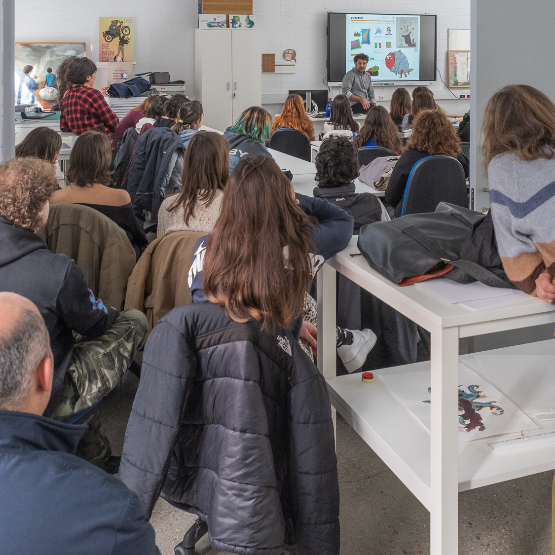 El acto reunió a los estudiantes de 1.º y 2.º curso del Ciclo Formativo de Grado Superior de Ilustración, junto con el alumnado del Ciclo de Gráfica Publicitaria. En total, participaron 75 estudiantes, además de varios docentes e ilustradores locales que se sumaron al encuentro.