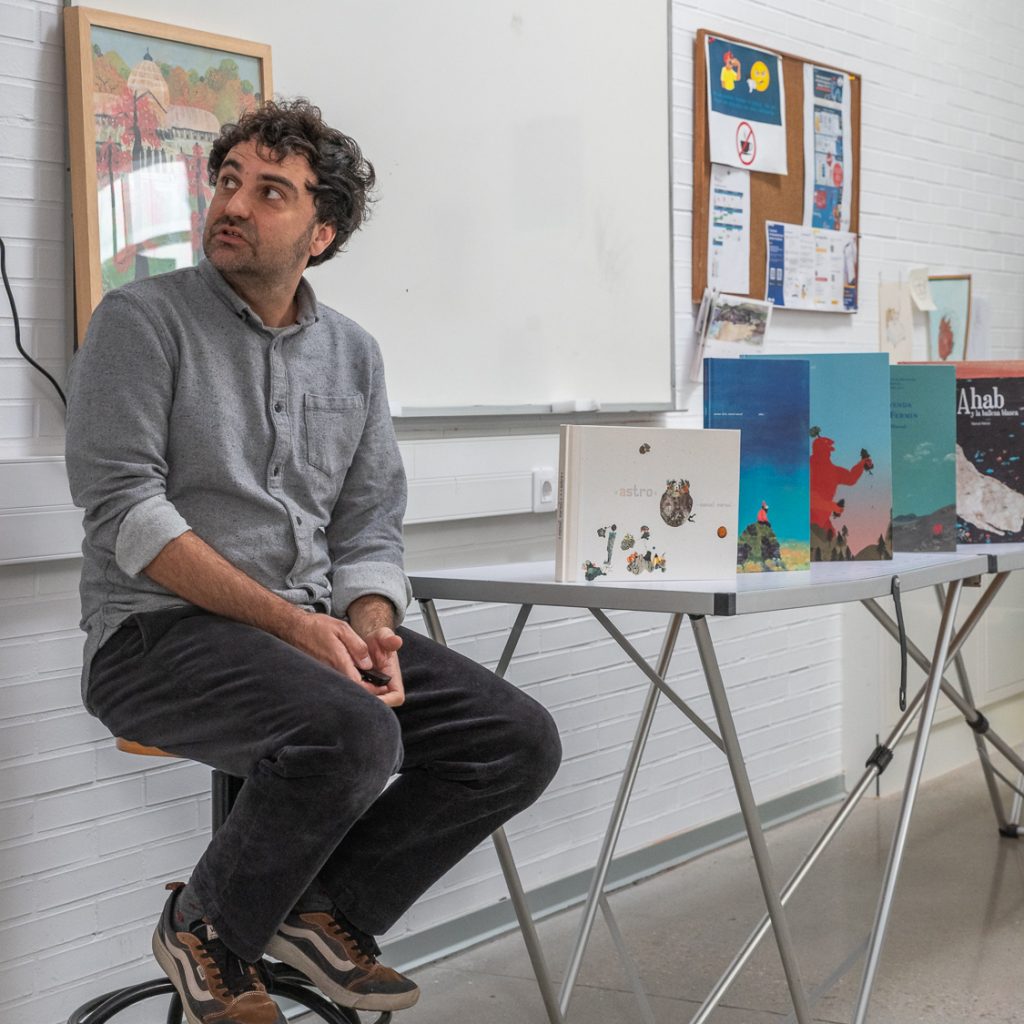 El autor abordó con rigor y franqueza los retos del oficio del ilustrador contemporáneo, aportando una reflexión valiosa sobre la búsqueda de la propia voz artística y el equilibrio entre encargo profesional y expresión personal.