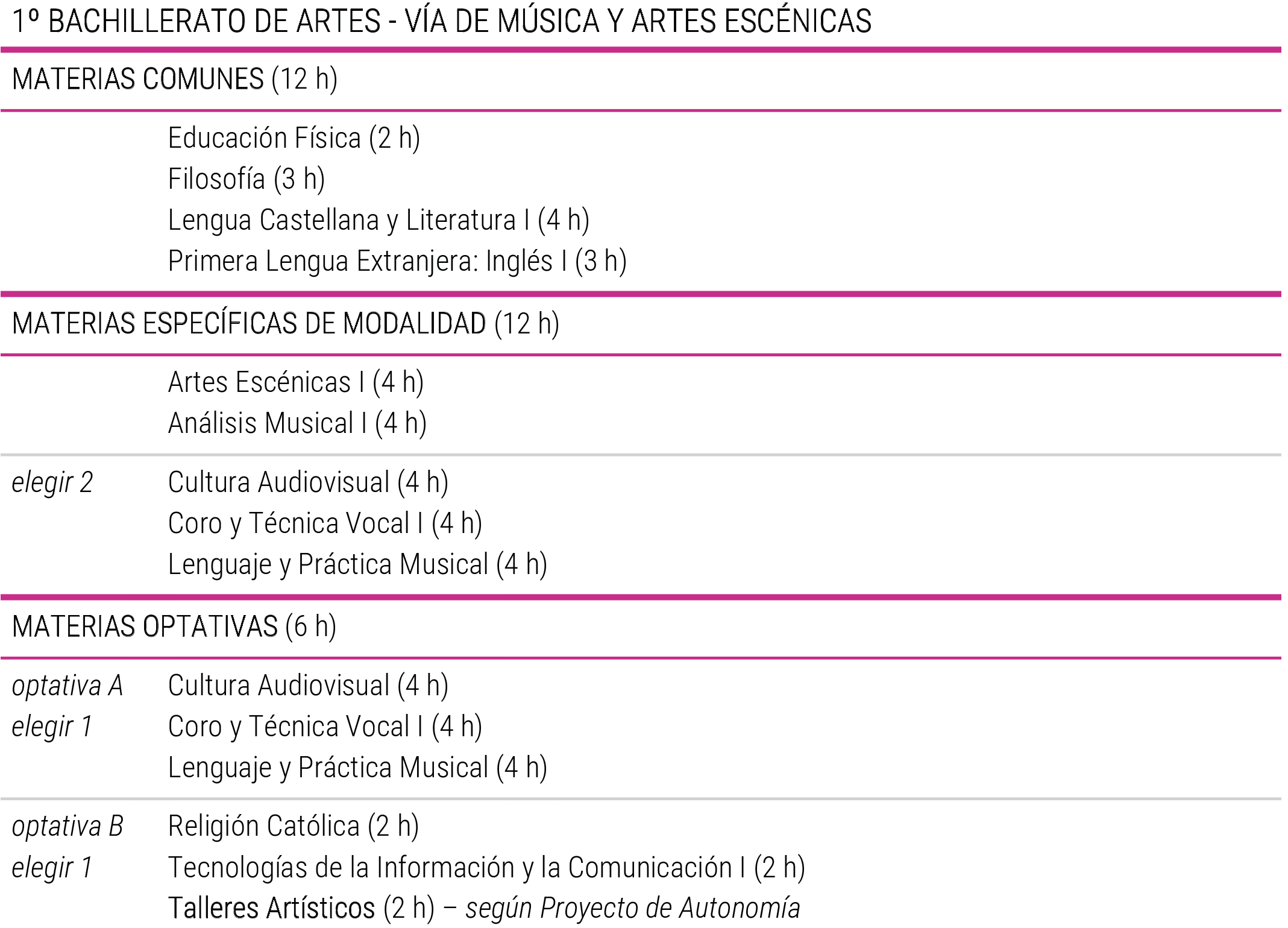 Asignaturas Bachillerato de Artes